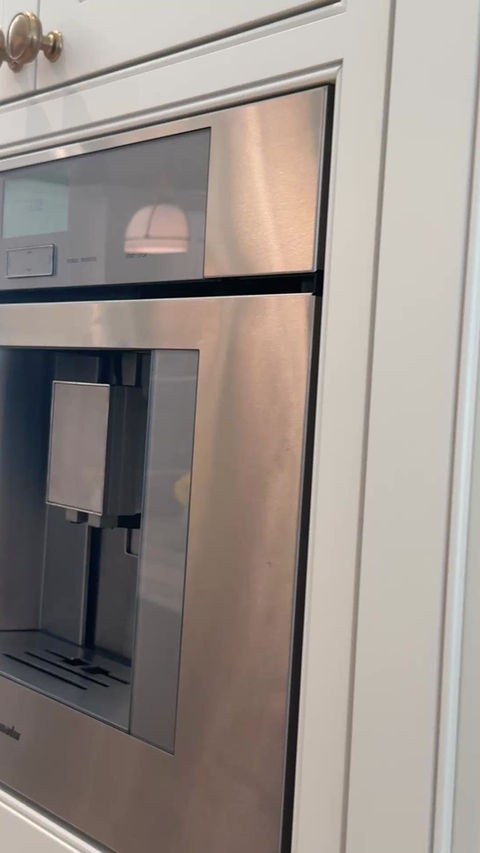 The open space offers room to roam. The homeowners sought a truly open concept kitchen space as part of a home renovation they planned. Our team collaborated with the couple to design a large kitchen, open into the great room, with ample space for entertaining. Custom cabinetry includes a glass-front wine cooler cabinet. Oversized quartz island and countertops, tile backsplash, and Thermador appliances offer both form and function. An externally mounted hood vent was planned to reduce interior noise. Engineered hardwood flooring is both durable and beautiful.